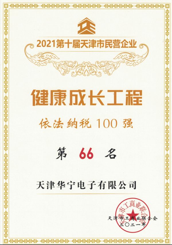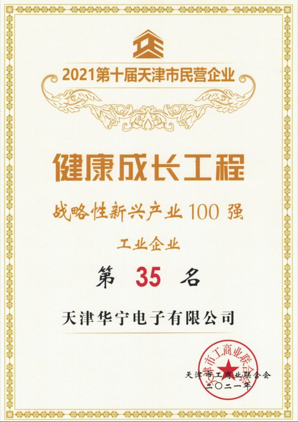 日前,我公司在第十届天津市民营企业“健康成长工程”评选活动中,荣获“战略性新兴产业100强”、“科技创新100强”、“依法纳税100强”荣誉。